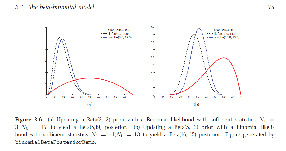 Una elección posible para las distribuciones a priori son aquellas que se conjugan con las funciones de verosimilitud, de manera que la distribución a posteriori es del mismo tipo que la distribución a priori pero con nuevos parámetros. Veamos algunos ejemplos.