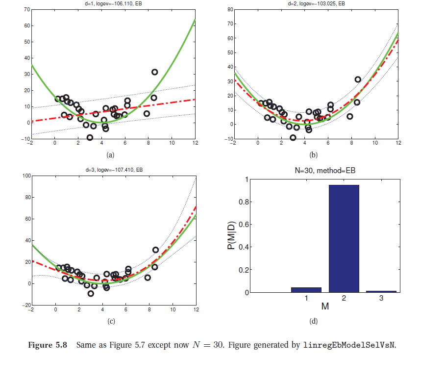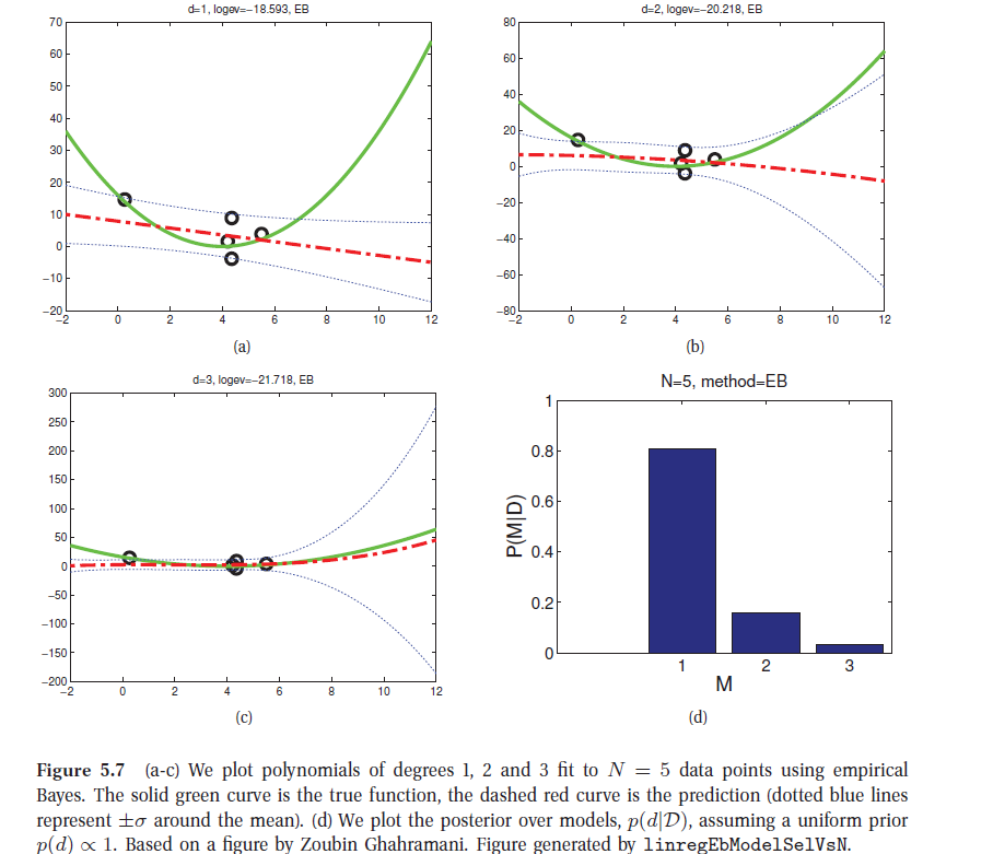 La navaja de Occam: (Bayesian Occam’s razor): el hecho de que la verosimilitud marginal considere la integración respecto de los parámetros impide que se maximice simplemente por aumentar el número de parámetros, con lo cual se previene el sobreajuste en la elección del modelo.