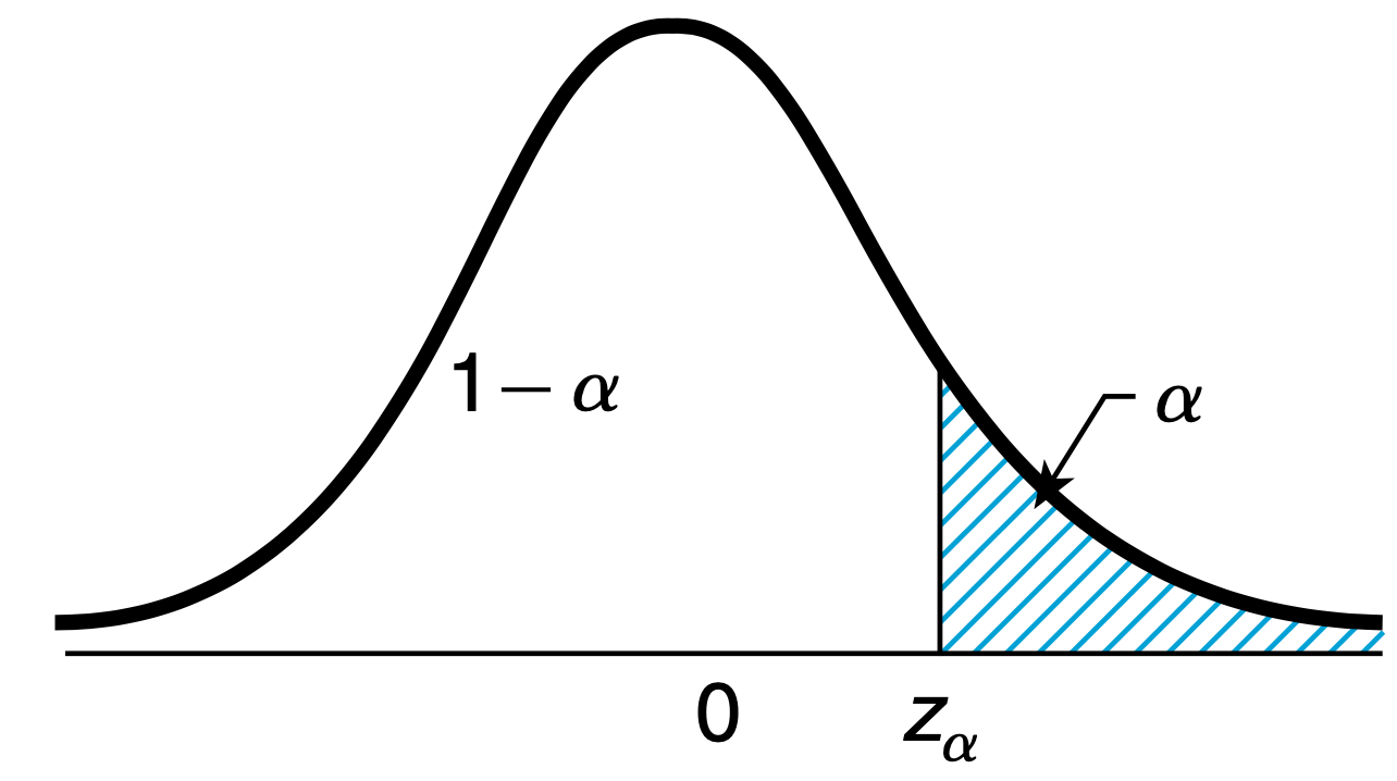 (1) En caso de la distribución normal estándar, sea \(z_{\alpha}\) tal que \(P(Z > z_{\alpha}) = \alpha\), entonces \(z_{\alpha}\) es el percentil \(100(1-\alpha)\) de \(Z\) (\(\alpha \in [0, 1]\)).