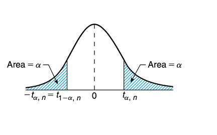 (2) En caso de la distribución de t, sea \(t_{\alpha,n}\) tal que \(P(T_{n} > t_{\alpha,n}) = \alpha\), entonces \(t_{\alpha,n}\) es el percentil \(100(1-\alpha)\) de \(T_{n}\).